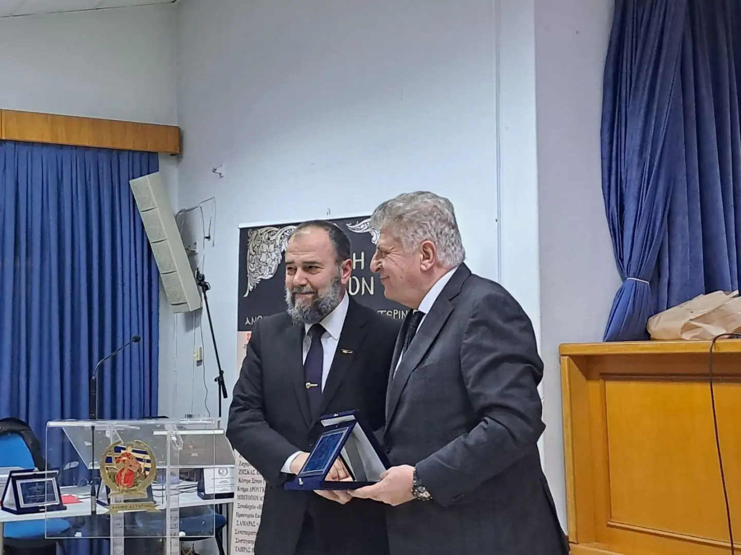 Στην συνέχεια δόθηκαν ορισμένα δώρα από την Σχολή Γονέων, από τον πρόεδρο της ΑΧΕΠΑ-Κατερίνης Παναγιώτη Ταρενίδη, τον Γραμματέας της Σχολής Γονέων Γιάννη Μπίνια, τον Βουλευτή Πιερίας Ξενοφών Μπαραλιάκο και την εκπρόσωπο του Βουλευτή Πιερίας Σάββα Χιονίδη στον κ. Στεφανή και στον κ. Συρίγο.