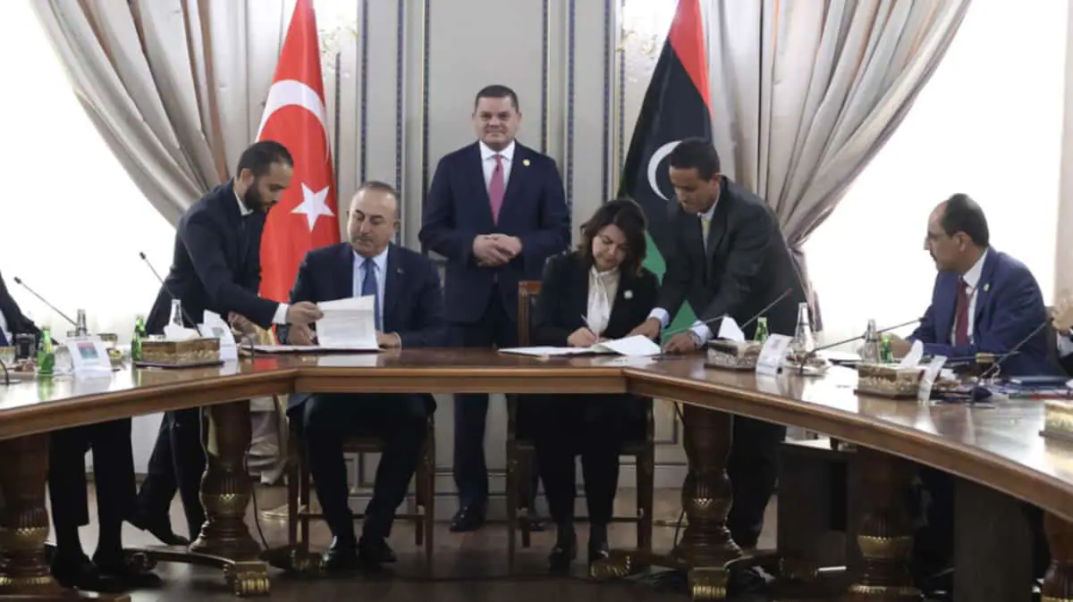 Σε μια τελετή – σόου έβαλαν την υπογραφή τους σε μία συμφωνία η οποία πατά πάνω στο παράνομο Τουρκολιβυκό μνημόνιο που υπέγραψε η Τουρκία με την κυβέρνηση Σάρατζ το 2019.
