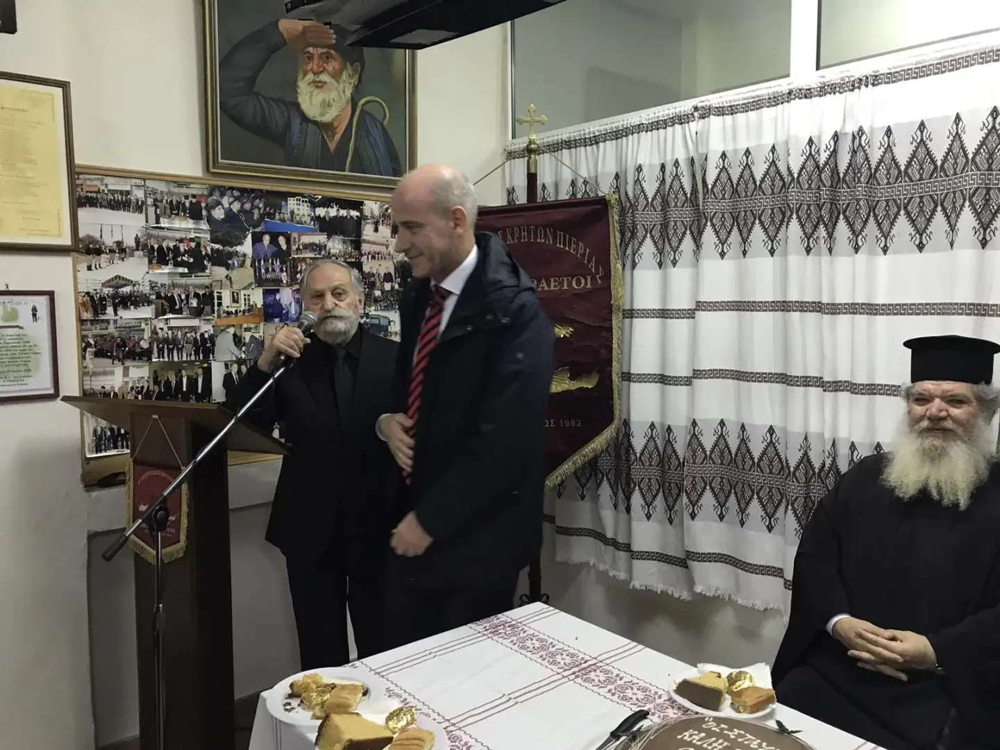 Οφείλουμε να πούμε ότι  ο κρητικός πρόεδρος του Συλλόγου Κωνσταντίνος Μανιουδάκης που  για χρόνια βρίσκεται  ανάμεσά μας  χαίρει άκρας εκτιμήσεων από  όλους τους Πιεριείς και   σε κάθε  εκδήλωσή του  για την  αγαπημένου του Κρήτη,  βρίσκονται  δίπλα του πολλοί και εκλεκτοί   συμπατριώτες μας.