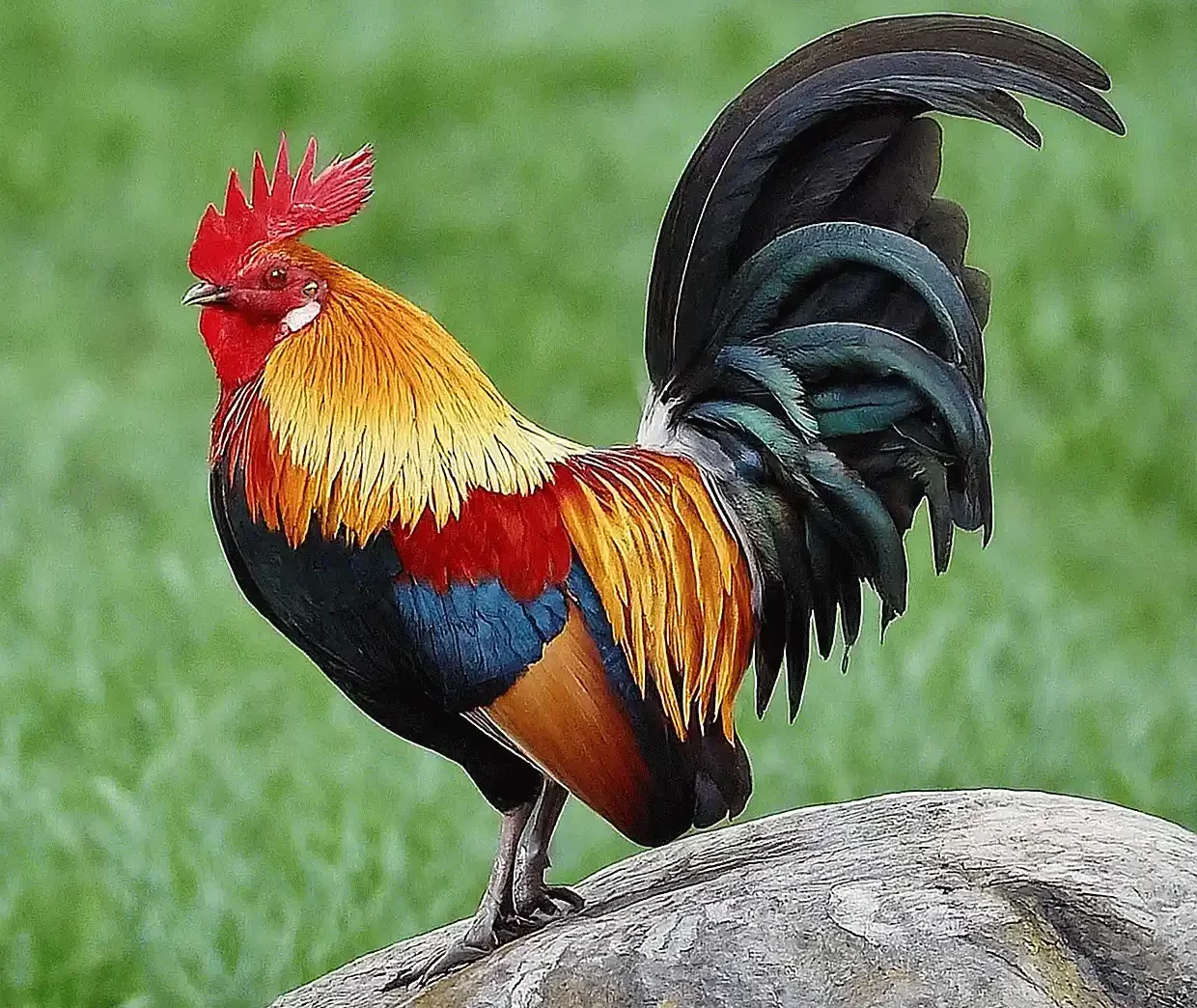 Ανάμεσα στις εκατοντάδες αυτές κότες κυκλοφορούν και οι πετεινοί, ζωηροί και περήφανοι. Σε κάθε κοπάδι έχει και καμιά 10/ριά πετεινούς, οι οποίοι επιβλέπουν και πότε – πότε μαλώνουν μεταξύ τους για την αρχηγία.