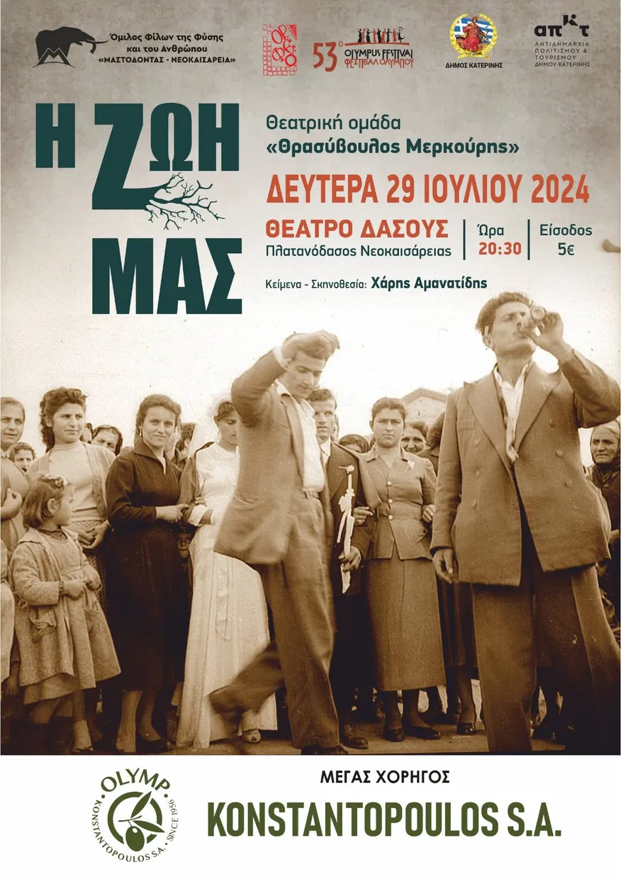 Σήμερα στο Θέατρο Δάσους – Πλατανόδασος Νεοκαισάρειας: «Η ΖΩΗ ΜΑΣ»