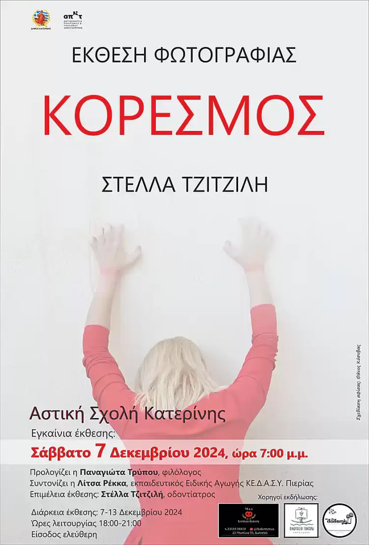 Η Αστική Σχολή Κατερίνης θα φιλοξενήσει φωτογραφίες της φωτογράφου Στέλλας Τζιτζιλή, στη δεύτερη ατομική της έκθεση, με τίτλο «Κορεσμός».