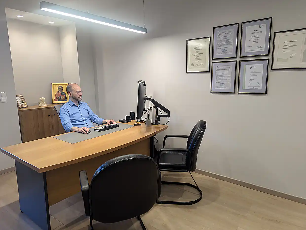 Πρόσφατα επέστρεψε στην Κατερίνη όπου ίδρυσε ένα πρότυπο γαστρεντερολογικό ιατρείο με υπερσύγχρονα μηχανήματα επί της οδού Ηφαίστου 2 στην Πλατεία Δημαρχείου και τίθεται στη διάθεση των συντοπιτών μας για παροχή της αναγκαίας προσφοράς σε όσους αντιμετωπίζουν προβλήματα που άπτονται στον τομέα της γαστρεντερολογίας.
