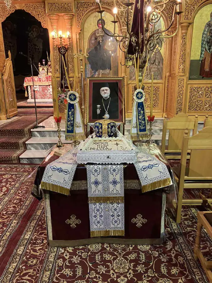 Την Κυριακή Β΄ Νηστειών 12 Μαρτίου, στον Ιερό Ναό Παντάνασσας Κατερίνης, που βρίσκεται εντός του συνοικισμού «Καταφιώτικα», τελέστηκε Αρχιερατική Θ. Λειτουργία και Μνημόσυνο προεξάρχοντος του Σεβασμιωτάτου Μητροπολίτου Τριπόλεως και πάσης Λιβύης κ. Θεοφυλάκτου, ο οποίος κήρυξε τον θ. λόγο και αναφέρθηκε στην προσωπικότητα του μακαριστού Αρχιερέως.