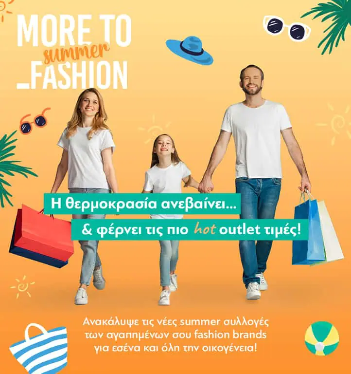 Επισκέψου σήμερα κιόλας τον μεγαλύτερο εκπτωτικό προορισμό της Θεσσαλίας και ανανέωσε τη γκαρνταρόμπα όλης της οικογένειας με τα νέα καλοκαιρινά ρούχα, παπούτσια, κοσμήματα και αξεσουάρ των αγαπημένων σου fashion brands …για το πιο οικονομικό αλλά και μοδάτο καλοκαίρι!
