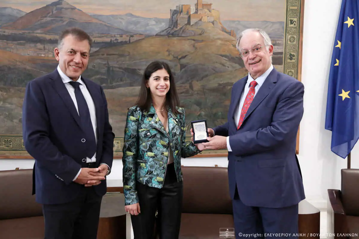 Στην αριστεύσασα μαθήτρια, ο Πρόεδρος της Βουλής προσέφερε αργυρό νόμισμα της Επιτροπής «Ελλάδα 2021», που εκδόθηκε στο πλαίσιο των εορτασμών για τα 200 χρόνια από την Επανάσταση του 1821, σχετικά με την ανάκτηση της Ηπείρου, ιδιαίτερης πατρίδας του κ. Τασούλα, το οποίο φέρει τη μορφή του Αθανάσιου Τσακάλωφ.