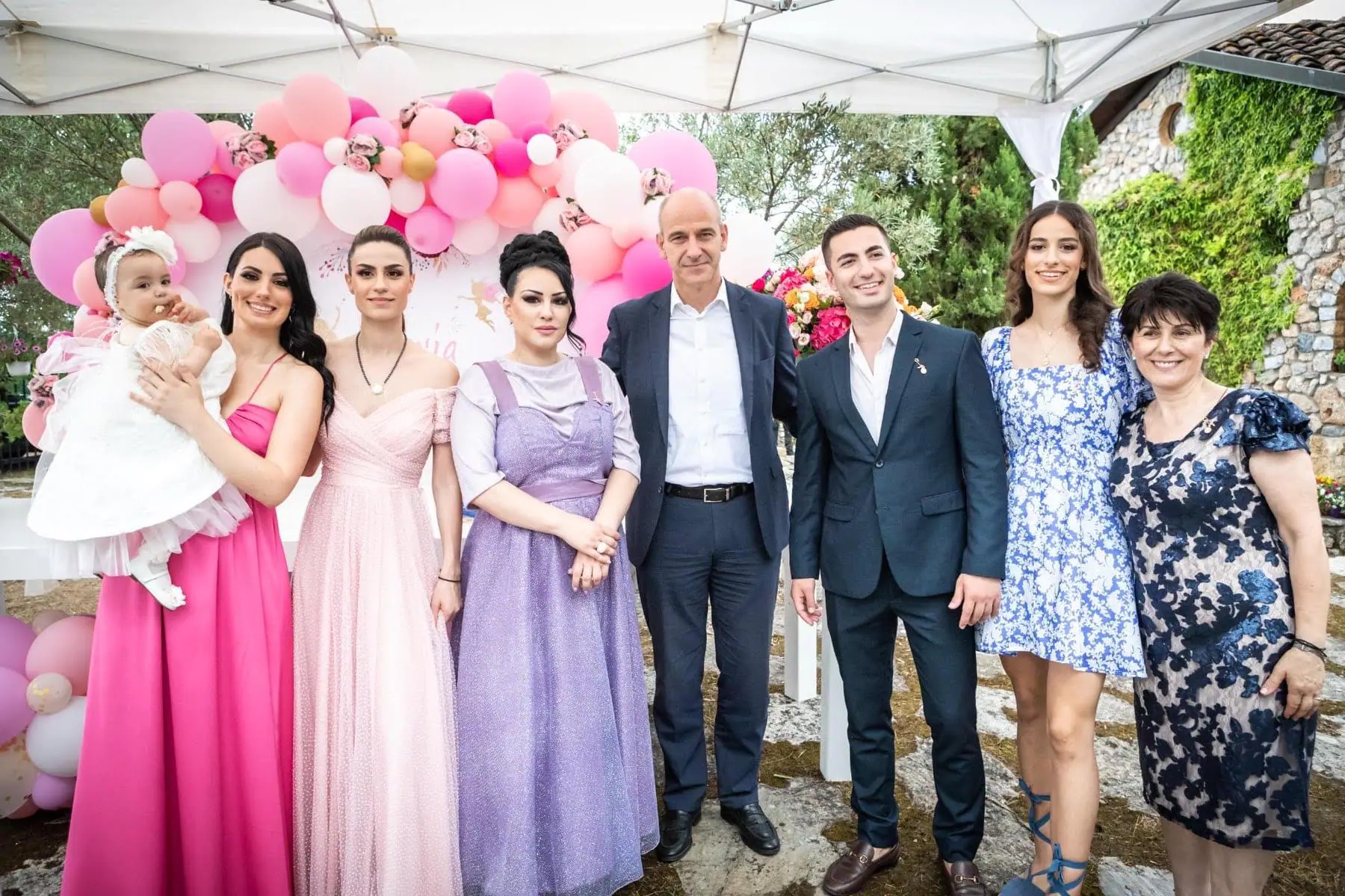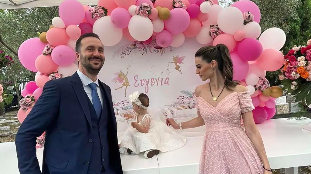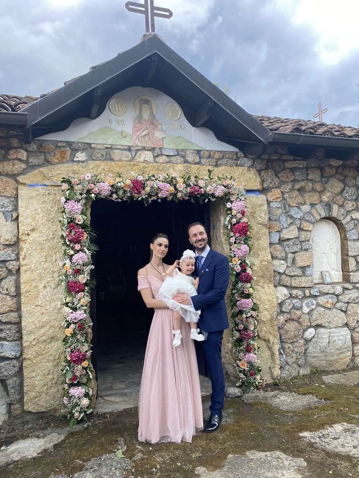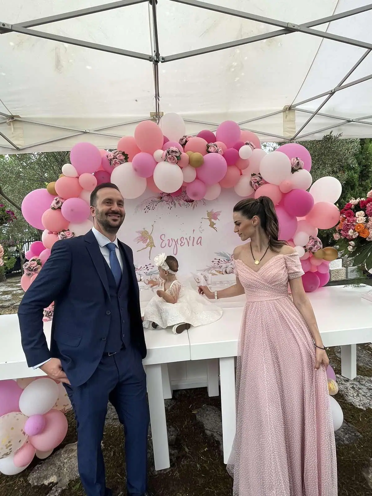 Η βάπτιση έγινε στο εξωκκλήσι της Παναγιάς στο Λιτόχωρο, που ανήκει στην οικογένεια, και γέμισε χαρά και ευτυχία τις δύο οικογένειες .
