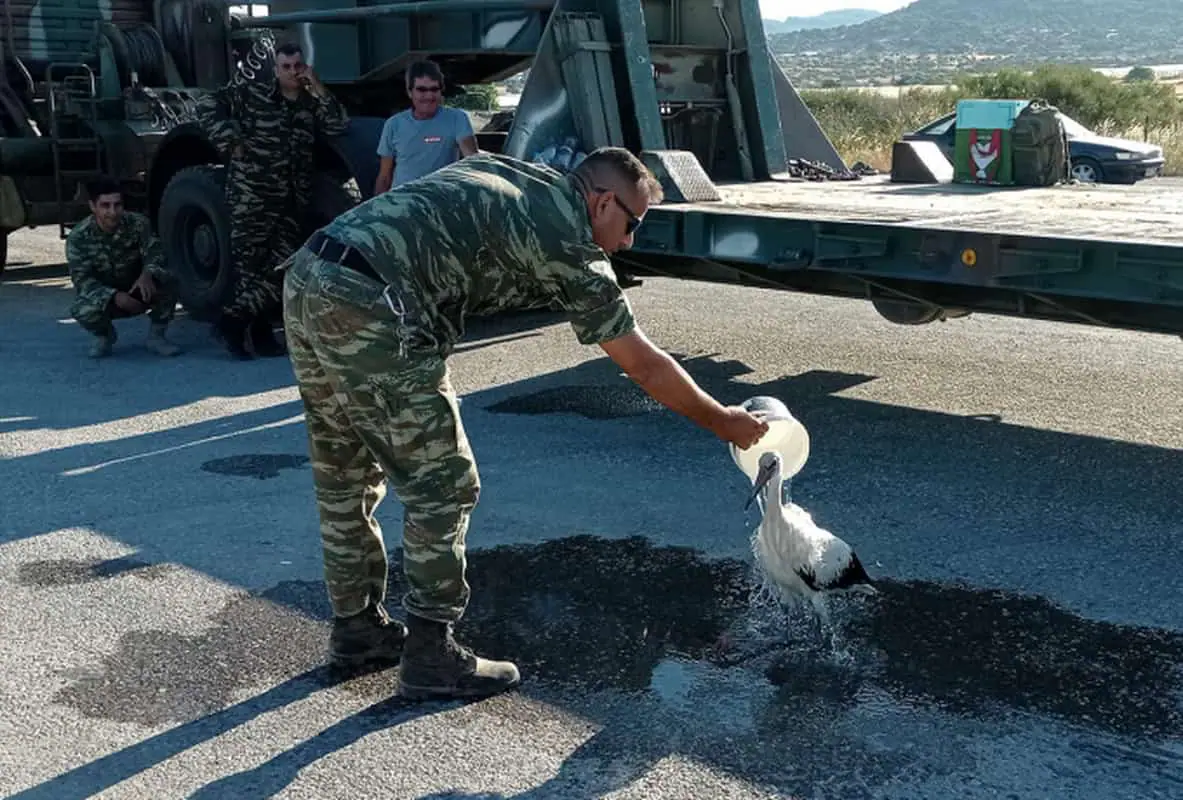 Του πρόσφερε λίγο νερό και άμεση μεταφορά του για κτηνιατρική φροντίδα στον ειδικό χώρο περίθαλψης ζώων και πουλιών που έχει δημιουργηθεί από τον Δήμο Δυτικής Λέσβου στο γήπεδο του Πολυχνίτου, όπως μεταδίδει το ΑΠΕ-ΜΠΕ.
