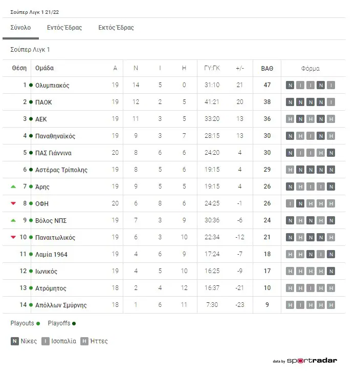 ΒΑΘΜΟΛΟΓΙΑ 2021/22