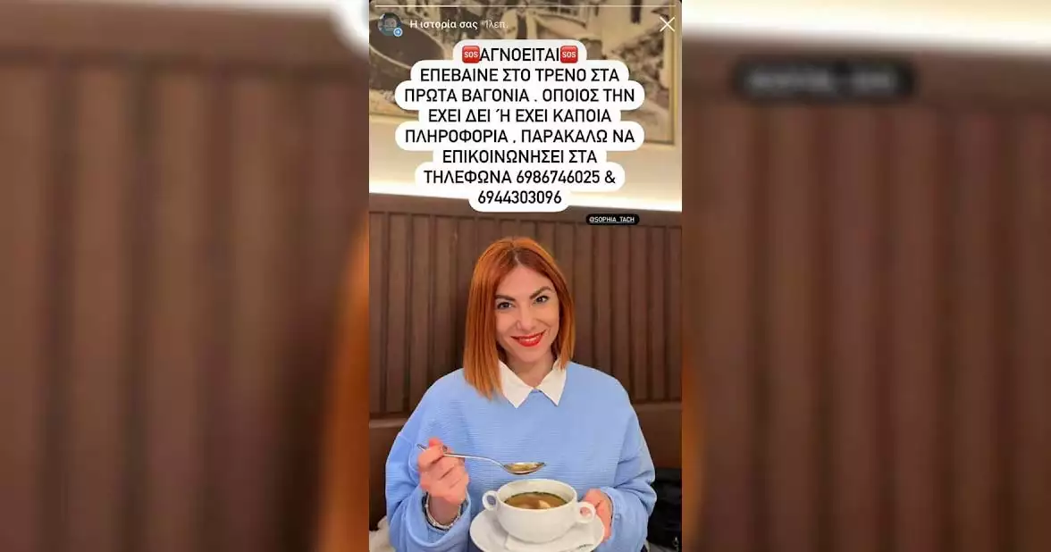 Η  Σοφία Ταχματζίδου ταξίδευε  με το μοιραίο τρένο  των Τεμπών και αγνοείται από το βράδυ της Τρίτης.