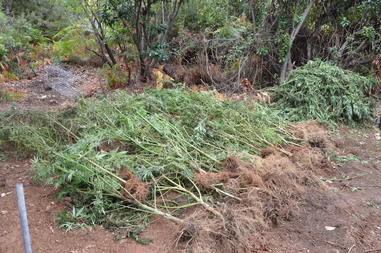 Ειδικότερα, μετά από συντονισμένες ενέργειες των αστυνομικών του Τμήματος Δίωξης Ναρκωτικών Κατερίνης, σε μία δασώδη έκταση που βρισκόταν εντός χαράδρας, κοντά σε αγροτεμάχιο του προαναφερόμενου άνδρα, βρέθηκαν και κατασχέθηκαν τα εξής:
