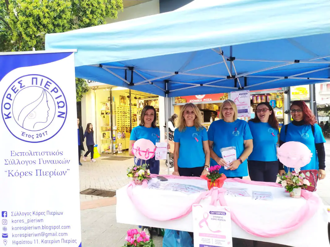Στην Κεντρική Πλατεία Κατερίνης βρέθηκε σήμερα από νωρίς ο Σύλλογος Κόρες Πιερίων, όπου μοίρασε ενημερωτικά φυλλάδια για να πληροφορήσει και να ευαισθητοποιήσει τον κόσμο, σχετικά με την αναγκαιότητα και την βαρύτητα που πρέπει να δώσουν στην «αυτοεξέταση του μαστού» και πώς μπορούν να εκτελέσουν την συγκεκριμένη εξέταση.