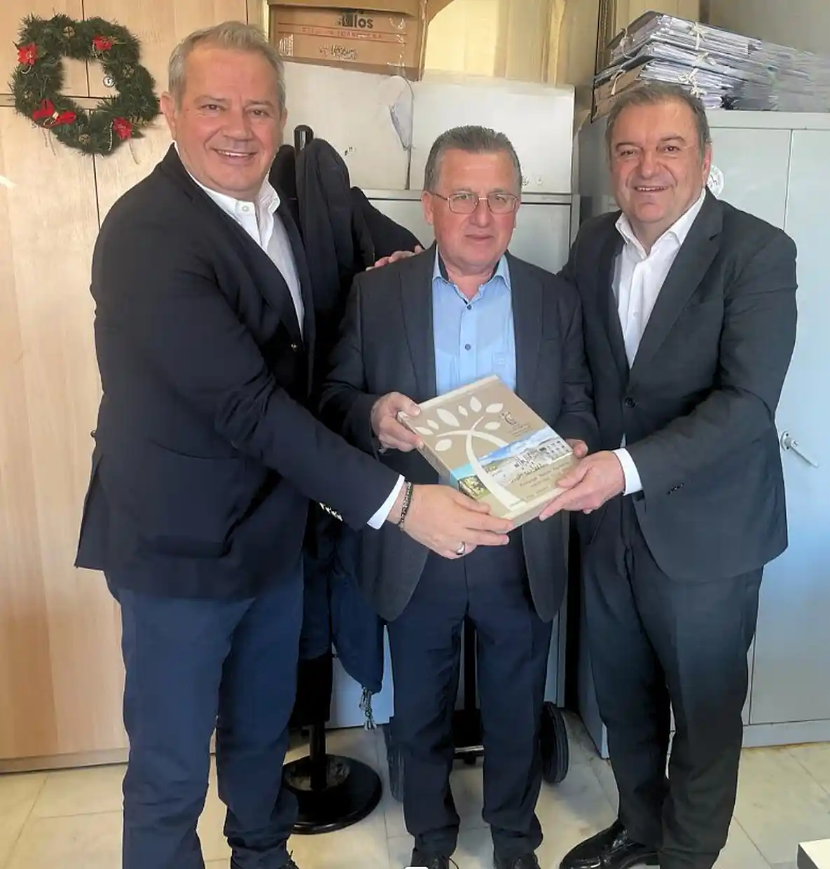 Με τον πρόεδρο της ΠΕΔΚΜ, Δήμαρχο Πυλαίας – Χορτιάτη, Ιγνάτιο Καϊτεζίδη και τον Πρόεδρο του Φορέα Διαχείρισης Στερεών Αποβλήτων (ΦΟΔΣΑ) Κεντρικής Μακεδονίας (και πρόεδρο Δ.Σ. Δήμου Πυλαίας – Χορτιάτη), Μιχάλη Γεράνη, συναντήθηκε σήμερα στο Δημαρχείο Κατερίνης, ο Δήμαρχος, Ιωάννης Ντούμος.