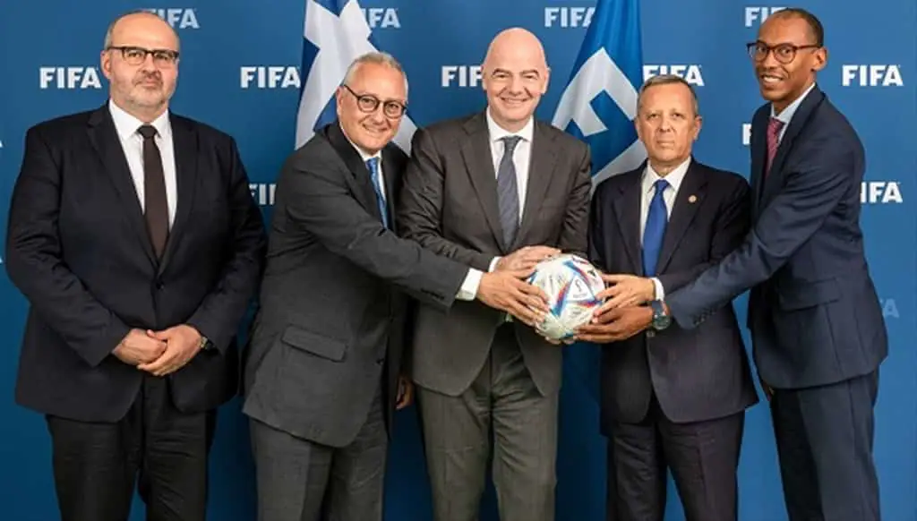 Ο κ. Ινφαντίνο έδωσε ως δώρο στον κ. Μπαλτάκο την επίσημη μπάλα του Παγκοσμίου Κυπέλλου του Κατάρ (η μπάλα στις photo).