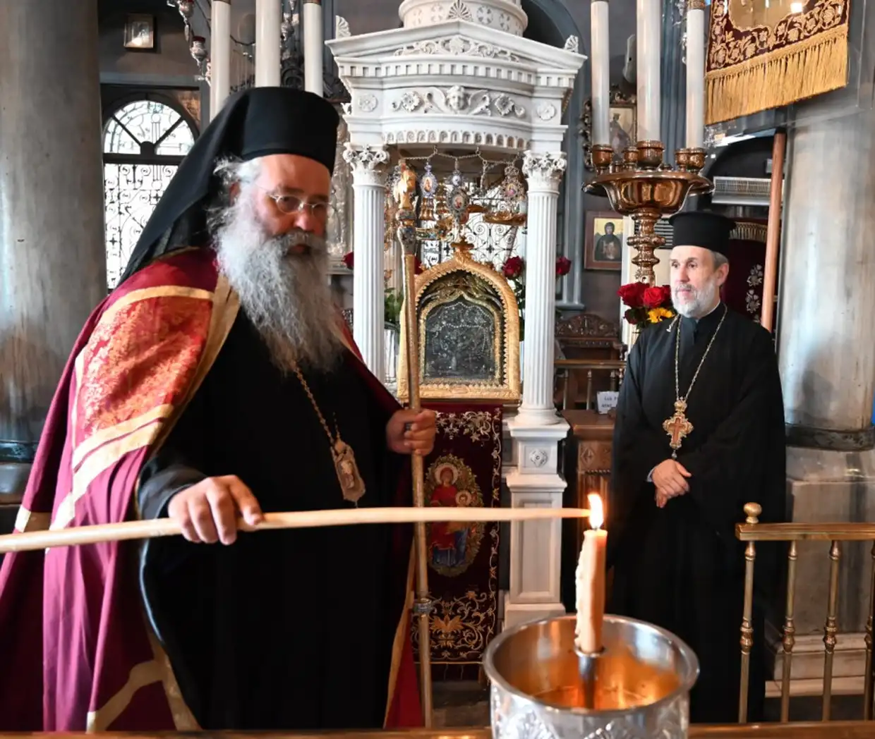 Συγκεκριμένα, το πρωί τέλεσε τη Θ. Λειτουργία και την Πρόοδο του Τιμίου Σταυρού, με την παρουσία κληρικών προσκυνητών και πλήθους πιστών από την Ελλάδα και το Εξωτερικό, που ήλθαν στο Ιερό Νησί της Παναγίας για την έναρξη του Δεκαπενταύγουστου.