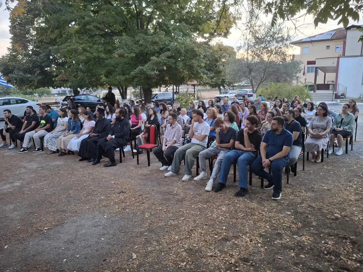 Αρχικά ο Σεβασμιώτατος Μητροπολίτης Κίτρους κ. Γεώργιος τέλεσε τους Χαιρετισμούς του Τιμίου και Ζωοποιού Σταυρού στον αύλειο χώρο του Ιερού Ναού Αγίας Σοφίας και στη συνέχεια απευθύνθηκε στους κατηχητές προς τους οποίους μίλησε πατρικά τονίζοντας την ευθύνη της διακονίας που αναλαμβάνουν. Ανέφερε δε και συγκεκριμένα περιστατικά που καταδεικνύουν την ωφέλεια του κατηχητικού έργου, αλλά και τη δίψα των μικρών παιδιών να διδαχθούν την αλήθεια του Ευαγγελίου.