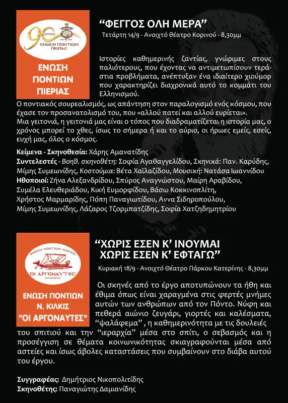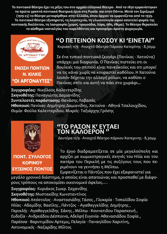 Οι παραστάσεις είναι στην Ποντιακή διάλεκτο.