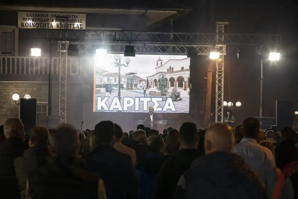 Μπροστά από το κτίριο της κοινότητας της Καρίτσας πραγματοποιήθηκε το βράδυ της Τετάρτης 4 Οκτωβρίου 2023 η προεκλογική συγκέντρωση του υποψηφίου δημάρχου Δίου-Ολύμπου, Βαγγέλη Γερολιόλιου.