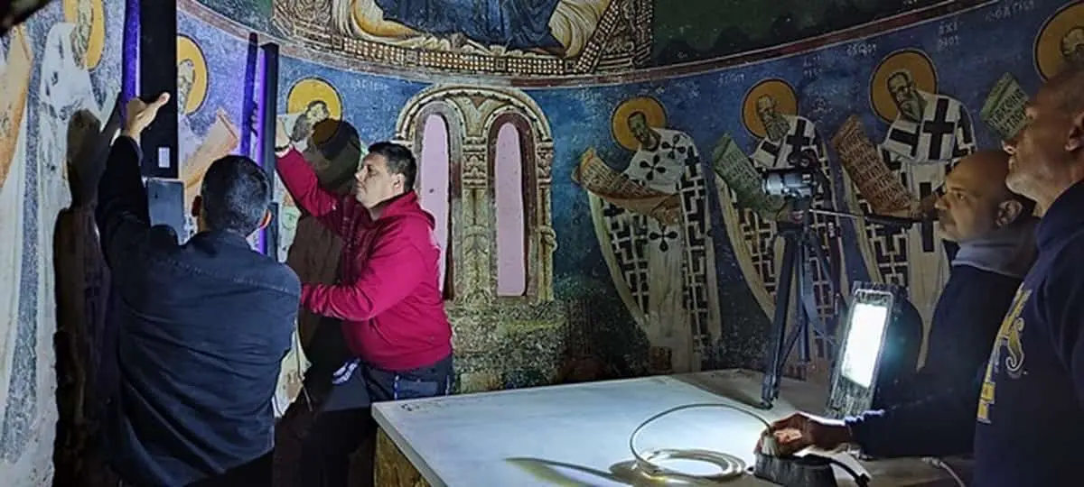 Τις μέρες αυτές, το επιτελείο των συντηρητών του ΕΚΒΜΜ (Ηλέκτρα Καραγιαννίδου, υπεύθυνη μελέτης, Αστέριο Αποστολίδη, Αλέξιο Παπαπελεκάνο και Αλέξανδρο Κωνσταντά) με επικεφαλής την Διευθύντρια δρ Φλώρα Καραγιάννη, με τη συνδρομή του προσωπικού του Ινστιτούτου Μνημείων και Μουσείων στα Μπίτολα (Oliviera Makrievska, Jovica Bogoev, Slave Stojanov, Krste Kocov) υπό τη διεύθυνση της Meri Stojanova, πραγματοποίησε επιτόπιες διερευνητικές εργασίες στο μνημείο, χρησιμοποιώντας εξειδικευμένο εξοπλισμό τελευταίας τεχνολογίας, που μετέφερε από την Ελλάδα. Σκοπός είναι να ολοκληρωθεί η όσο το δυνατόν καλύτερη τεκμηρίωση της αυθεντικής ζωγραφικής, ο εντοπισμός και εξακρίβωση πιθανών επιζωγραφήσεων και όλων των επεμβάσεων που υπέστη μέσα στους αιώνες, η καταγραφή της παθολογίας του, και τελικά, οι προτεινόμενες επεμβάσεις για τη συντήρησή τους. Η μελέτη προβλέπεται να ολοκληρωθεί έως τον προσεχή Ιούλιο, όπου και θα κατατεθεί προς έγκριση από τα αρμόδια όργανα του Υπουργείου Πολιτισμού της Βόρειας Μακεδονίας. Στη συνέχεια, το ΕΚΒΜΜ θα προχωρήσει στην εκτέλεση του έργου συντήρησης των τοιχογραφιών με έξοδα του Ελληνικού Υπουργείου Πολιτισμού και Αθλητισμού.