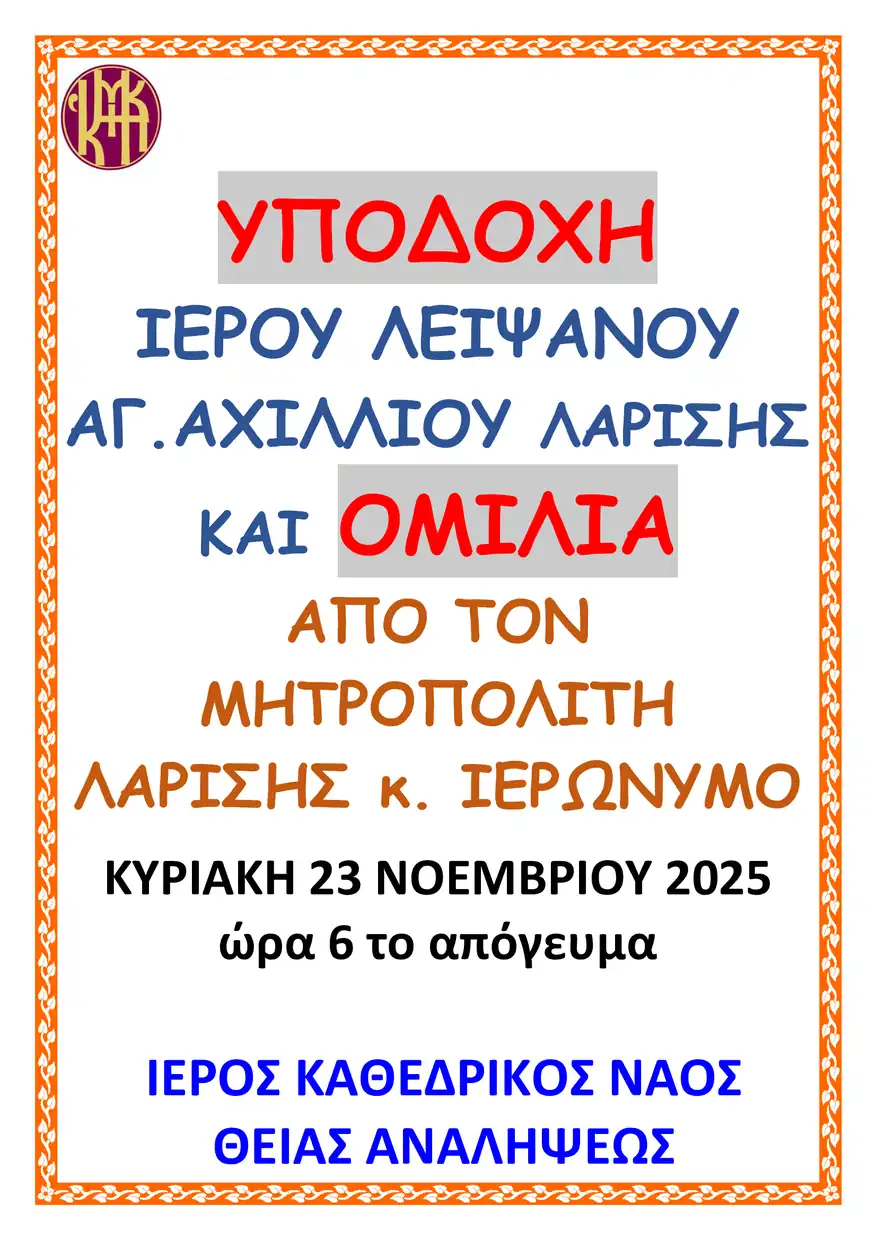 Μπορείτε να δείτε στον παρακάτω σύνδεσμο την ομιλία της προηγούμενης Κυριακής: