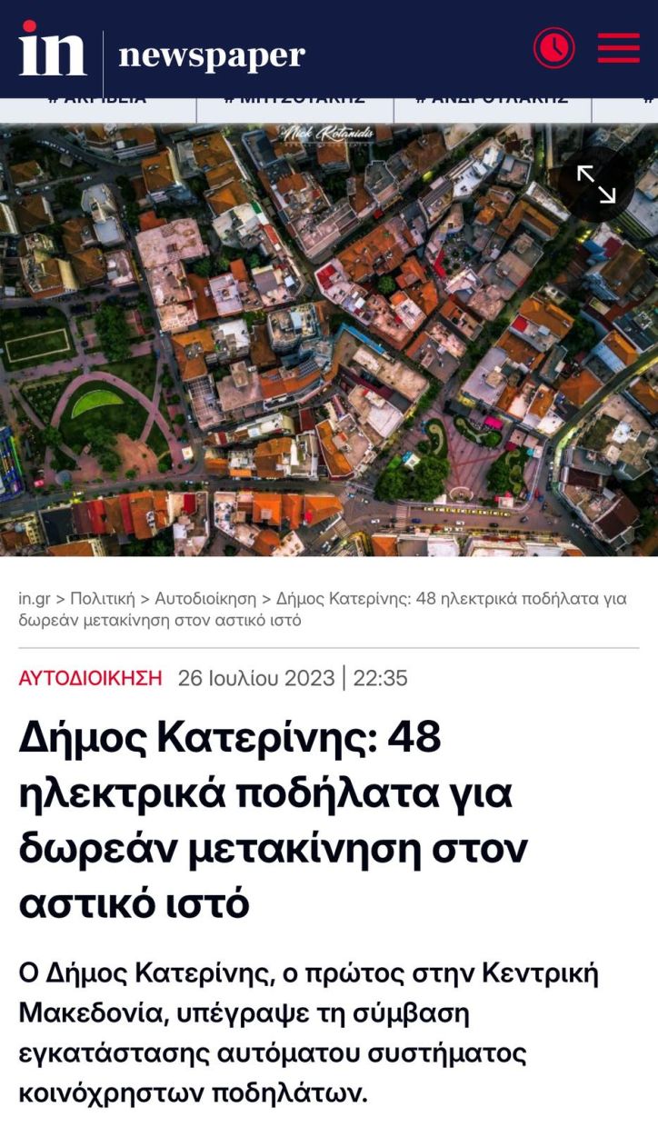 Η αδράνεια αυτή απαξιώνει δημόσιο χρήμα, στερεί τους δημότες από ένα σύγχρονο εργαλείο μετακίνησης και εκθέτει τον Δήμο Κατερίνης απέναντι στις ευρωπαϊκές αρχές, που χρηματοδότησαν το έργο για την ενίσχυση της μικροκινητικότητας.