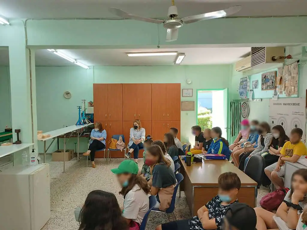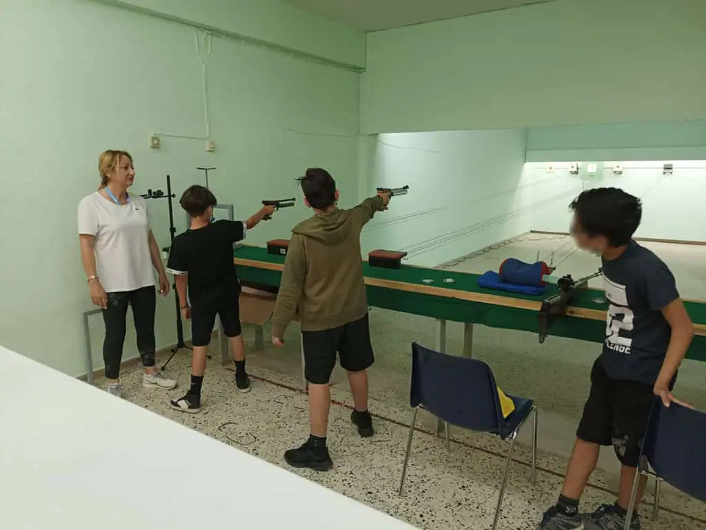 Στην συνέχεια οι μαθητές και οι μαθήτριες του 19ου Δημοτικού Σχολείου Κατερίνης επισκέφτηκαν το σκοπευτήριο όπου προπονείται ο ΓΑΣ Αρχέλαος και τους υποδέχτηκε η προπονήτρια του τμήματος, παλιά πρωταθλήτρια και νυν τεχνική σύμβουλος της Ομοσπονδίας κ. Υφαντίδου Ευρώπη. Τα παιδιά είχαν την δυνατότητα να σκοπεύσουν με τουφέκι και πιστόλι με την χαρά και την ικανοποίηση να είναι ζωγραφισμένη στα πρόσωπά τους.