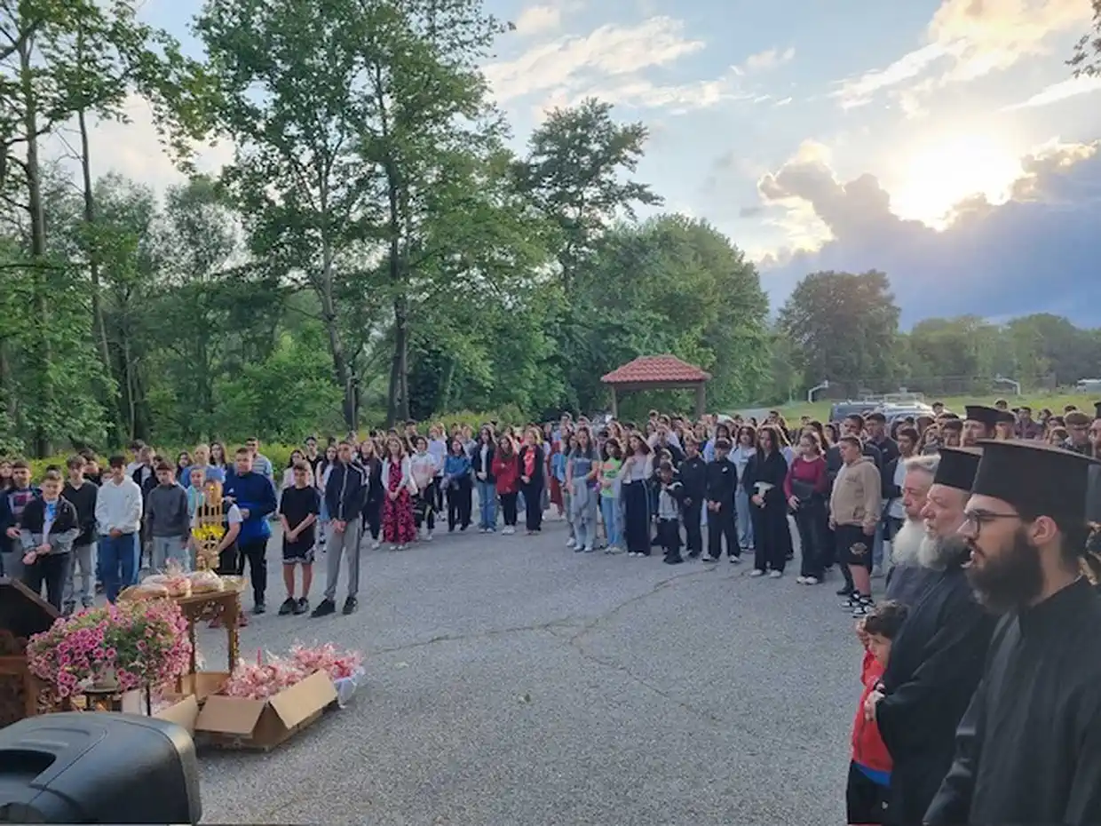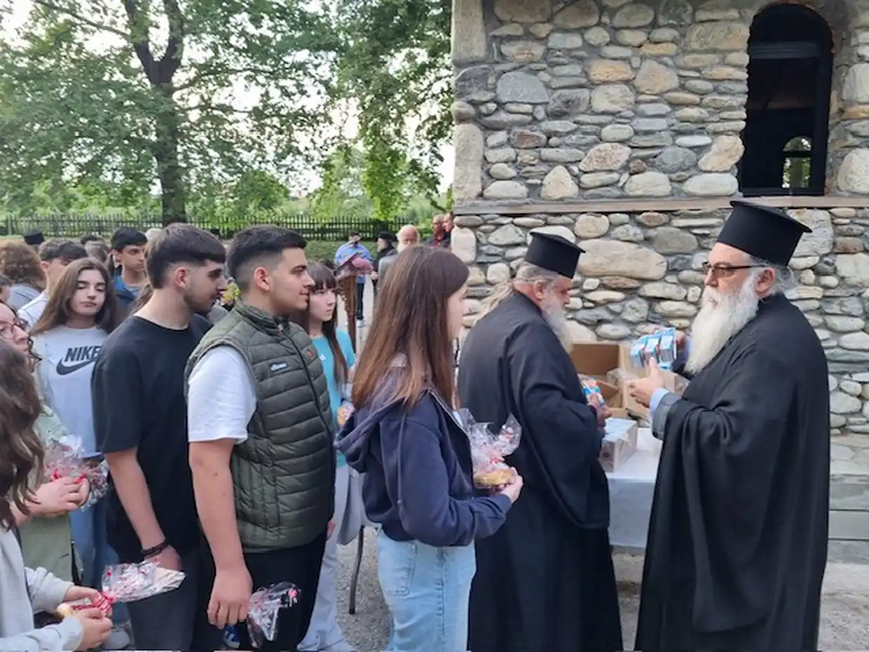 Αρχικά τελέσθηκε από τον Σεβασμιώτατο Μητροπολίτη Κίτρους, Κατερίνης και Πλαταμώνος κ. Γεώργιο η ακολουθία της Αρτοκλασίας στον νεόδμητο Ιερό Ναό της Αγίας Ειρήνης Χρυσοβαλάντου, ο οποίος βρίσκεται στον περιβάλλοντα χώρο, ως έκφραση ευγνωμοσύνης προς τον Θεό για την ολοκλήρωση της κατηχητικής χρονιάς και προσευχή υπέρ υγείας και πνευματικής προόδου όλων των παιδιών, των γονέων και των κατηχητών.