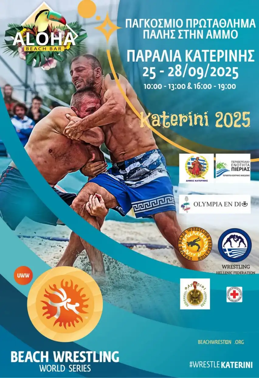 Στην Παραλία Κατερίνης και συγκεκριμένα στο beach bar Aloha  γίνονται οι τελικοί της 4ης φάσης του Παγκοσμίου πρωταθλήματος πάλης στην άμμο για το 2025 με την συμμετοχή πέντε Ελλήνων αθλητών.