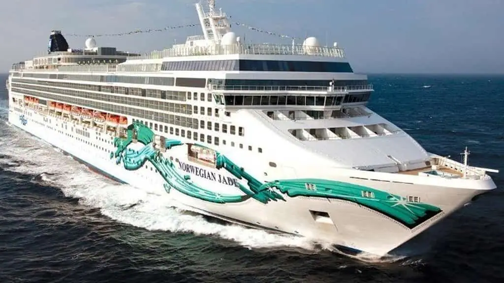Πρόκειται για το κρουαζιερόπλοιο “Norwegian Jade”, που φέρει σημαία από τις Μπαχάμες και το μήκος του φθάνει τα 298 μέτρα και διαθέτει 12 καταστρώματα για τους ταξιδιώτες και το πλήρωμα.