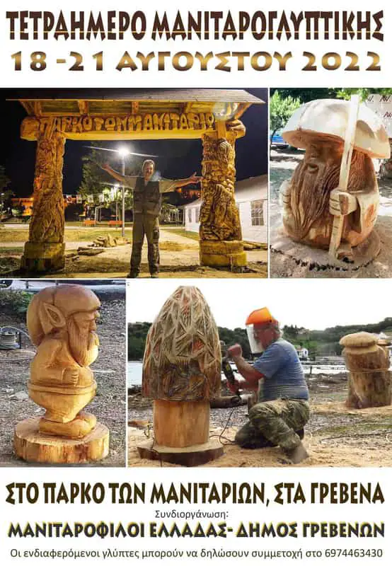 Ξεκίνησαν οι προετοιμασίες για το τετραήμερο φεστιβάλ μανιταρογλυπτικής, που διοργανώνουν από κοινού οι Μανιταρόφιλοι Ελλάδας και ο Δήμος Γρεβενών, λαμβάνοντας χώρα στο “Πάρκο των Μανιταριών” της πόλης των Γρεβενών από την Πέμπτη 18 έως την Κυριακή 21 Αυγούστου, με ελεύθερη είσοδο για όλες και όλους, μικρούς και μεγάλους.
