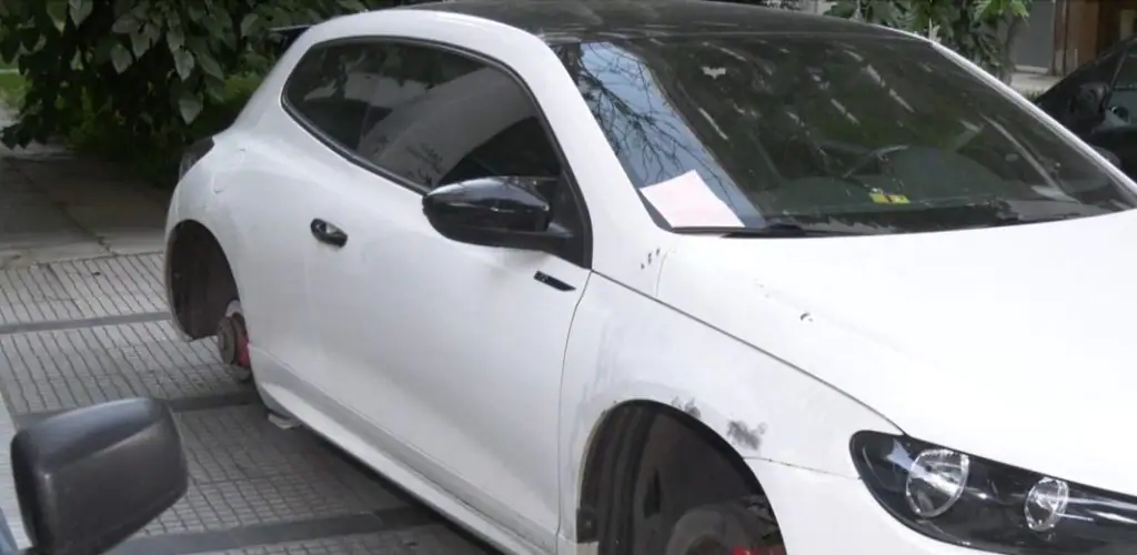 Όπως έγινε γνωστό, ο ιδιοκτήτης του όχι μόνο βρήκε το αυτοκίνητό του χωρίς ρόδες αλλά του έκοψαν και κλήση για παράνομη στάθμευση.