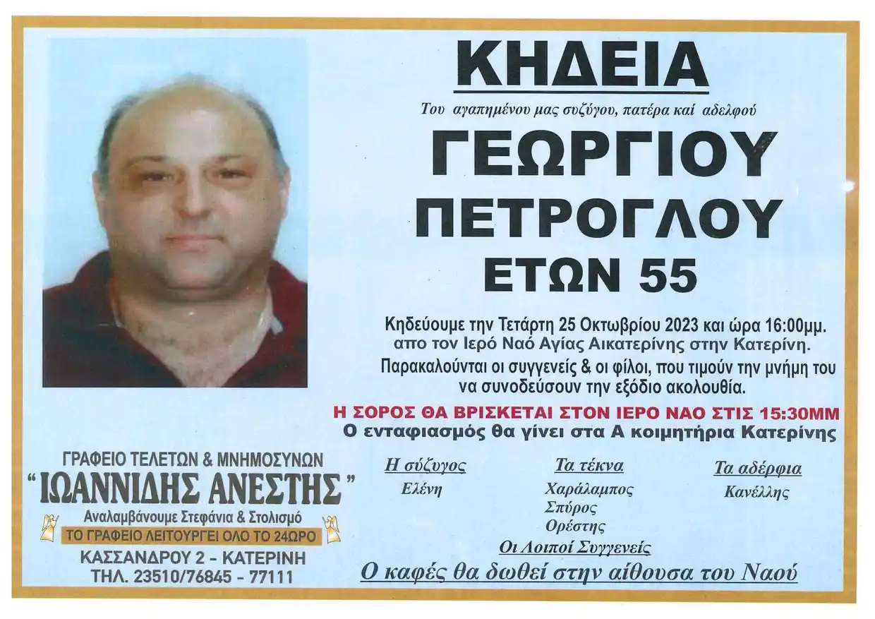 Ολύμπιο Βήμα » Επικαιρότητα » Κοινωνικά » Θρήνος στην Κατερίνη: Έφυγε από τη ζωή ο 55χρονος Γεώργιος Πετρογλου
