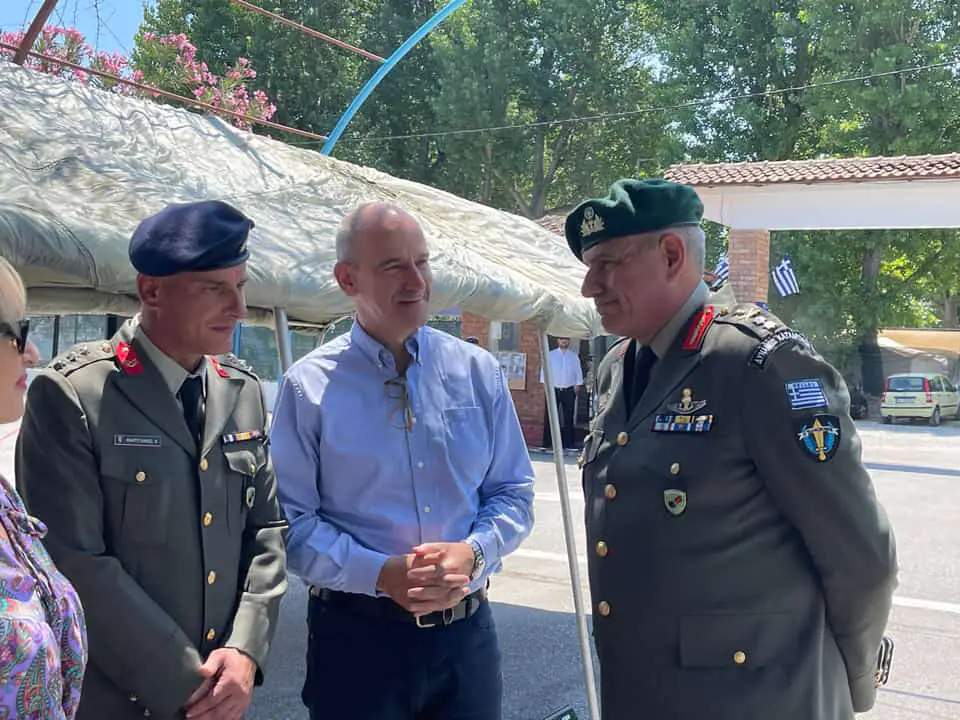 Στην εκδήλωση τιμής και μνήμης παρευρέθηκαν συγγενείς του πεσόντα Ήρωα, οι Βουλευτές Πιερίας κ.κ. Ξενοφών Μπαραλιάκος, Άννα Μάνη-Παπαδημητρίου, Σάββας Χιονίδης και Ελισσάβετ Σκούφα, η Αντιπεριφερειάρχης Π.Ε. Πιερίας κ. Σοφία Μαυρίδου, οι Δήμαρχοι Δίου-Ολύμπου κ. Ευάγγελος Γερολιόλιος και Νικολάου Σκουφά κ. Ροζίνα Βαβέτση, ο Διοικητής της Ι Μεραρχίας Πεζικού Υποστράτηγος Πάρις Καπραβέλος και ο Αντιστράτηγος ε.α. Επίτιμος Διοικητής Ι ΜΠ Σάββας Κολοκούρης.