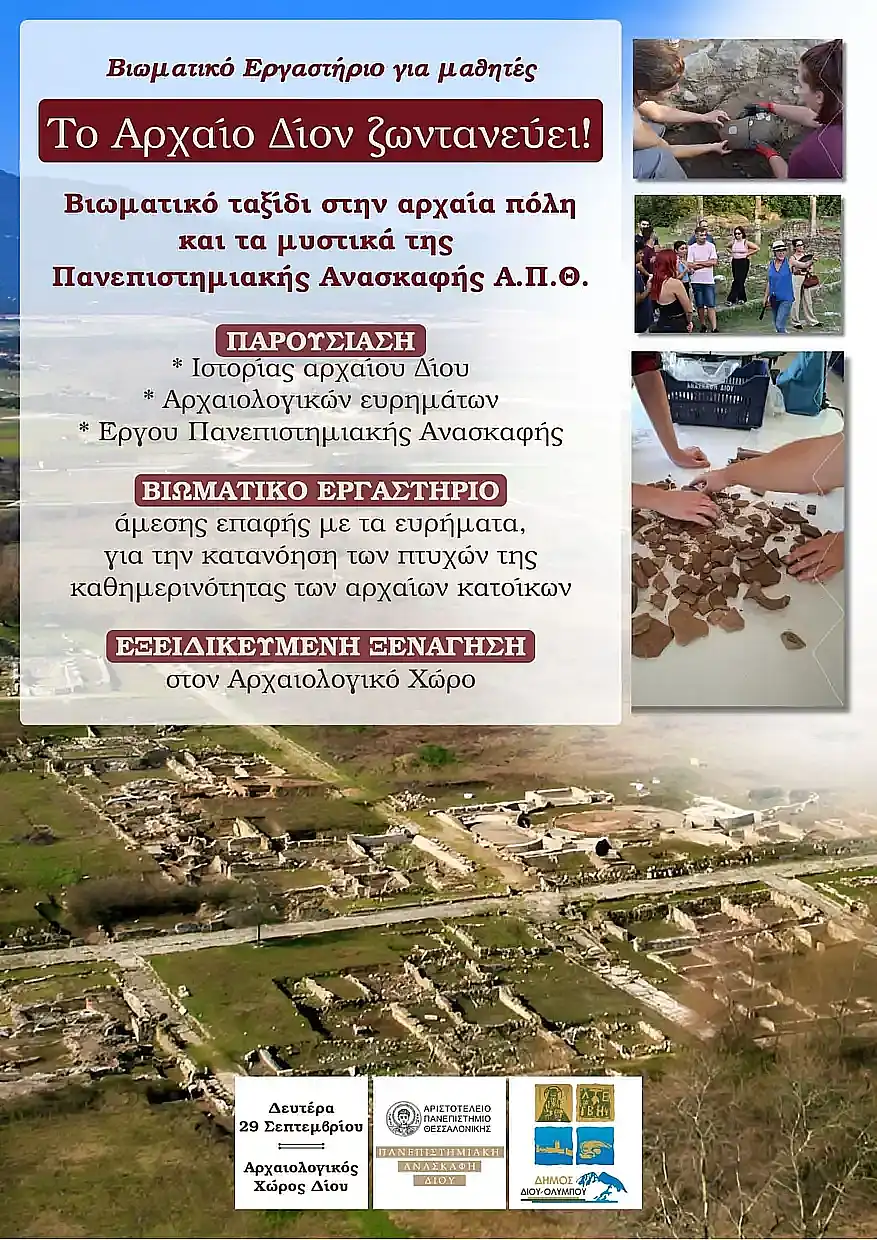 Κατ’ αρχάς, η αναλυτική παρουσίαση της ιστορίας του Δίου από την αρχαιότητα έως τα νεότερα χρόνια, των αρχαιολογικών ευρημάτων και του σημαντικού έργου της Πανεπιστημιακής Ανασκαφής του Α.Π.Θ. εφοδίασαν τα παιδιά μας με πλούσιες και βαθιές γνώσεις για τον αρχαιολογικό χώρο και την Πανεπιστημιακή Ανασκαφή.