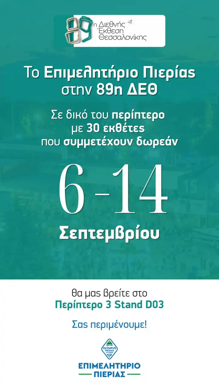 «Θέλουμε να δώσουμε στις επιχειρήσεις μας τη δυνατότητα να προβάλλουν τα προϊόντα τους σε ένα από τα μεγαλύτερα εκθεσιακά γεγονότα της χώρας και να ανοίξουν νέους δρόμους συνεργασίας και ανάπτυξης», τονίζει χαρακτηριστικά ο Πρόεδρος του Επιμελητηρίου Πιερίας Κωνσταντίνος Πίτσιας.
