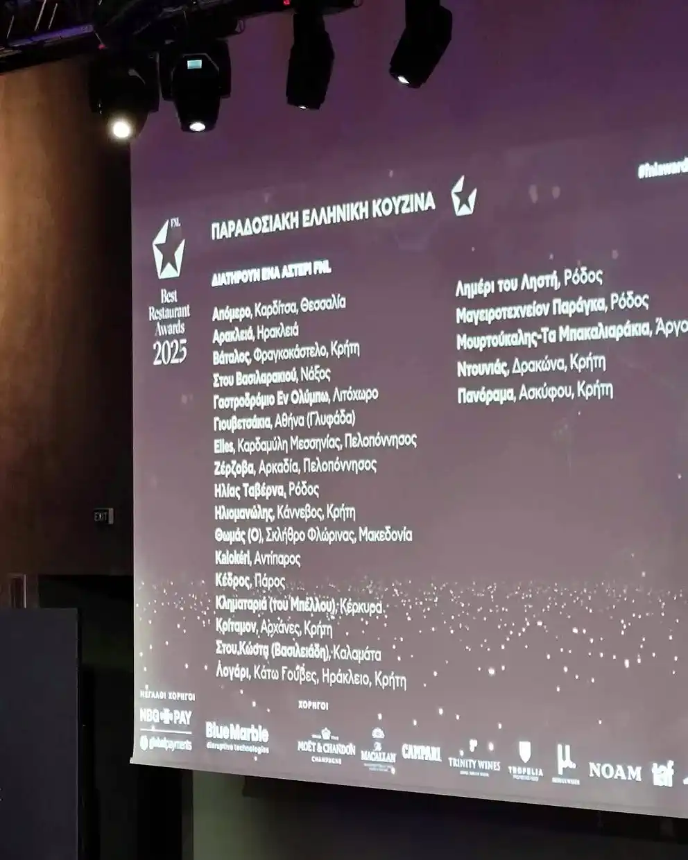 Το εστιατόριο, που για πάνω από 15 χρόνια συγκεντρώνει σταθερά πλήθος διακρίσεων και βραβείων, π.χ. Χρυσός Σκούφος, Βραβείο Ελληνικής Κουζίνας (Greek Cuisine Award) από το «Αθηνόραμα», FNL Best Restaurant Awards κ.α., προσφέρει στους επισκέπτες του μία μοναδική γευστική εμπειρία βασισμένη σε εκλεκτά προϊόντα και ψαγμένη τοπική πρώτη ύλη από την περιοχή πέριξ του Ολύμπου.