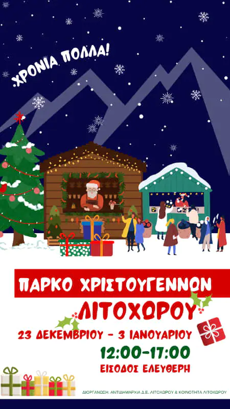 Το πρόγραμμα των εκδηλώσεων του Χριστουγεννιάτικου Πάρκου Λιτοχώρου θα προσαρμόζεται και θα μεταβάλλεται ανάλογα με τις καιρικές συνθήκες που θα επικρατούν.