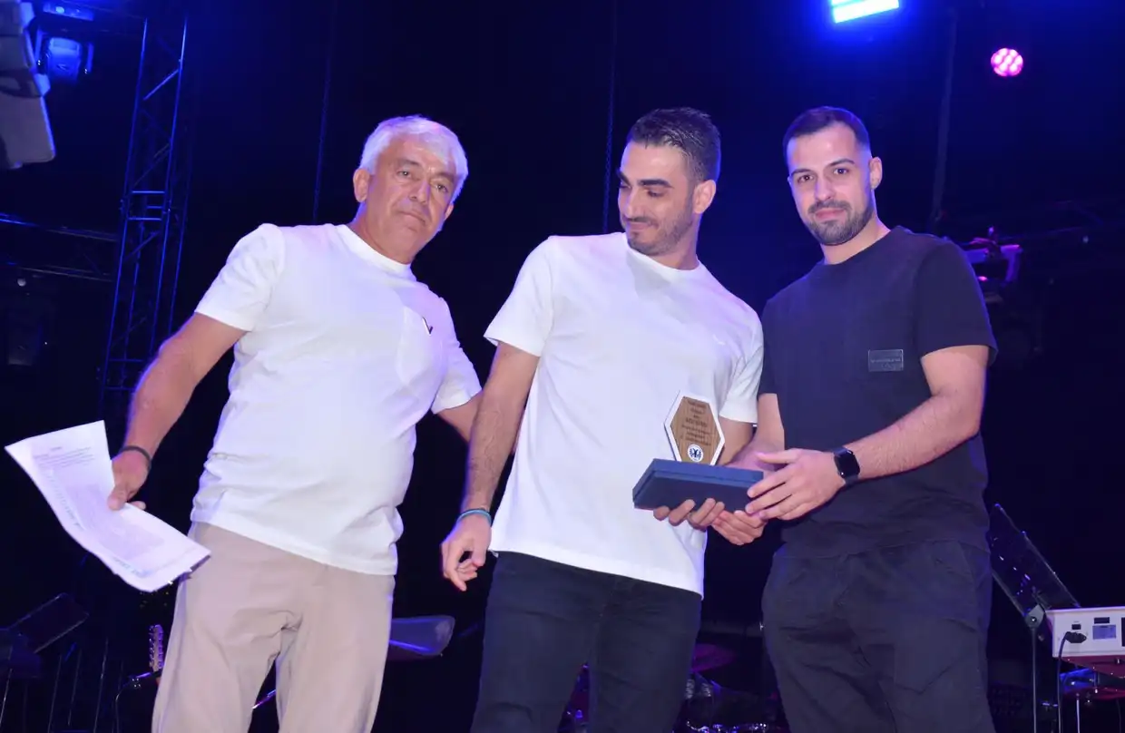 Επίσης στον καλλιτέχνη Γιάννη Πλούταρχο απένειμε τιμητική πλακέτα για λογαριασμό του Ατρομήτου, ο Δήμαρχος Κατερίνης Γιάννης Ντούμος.