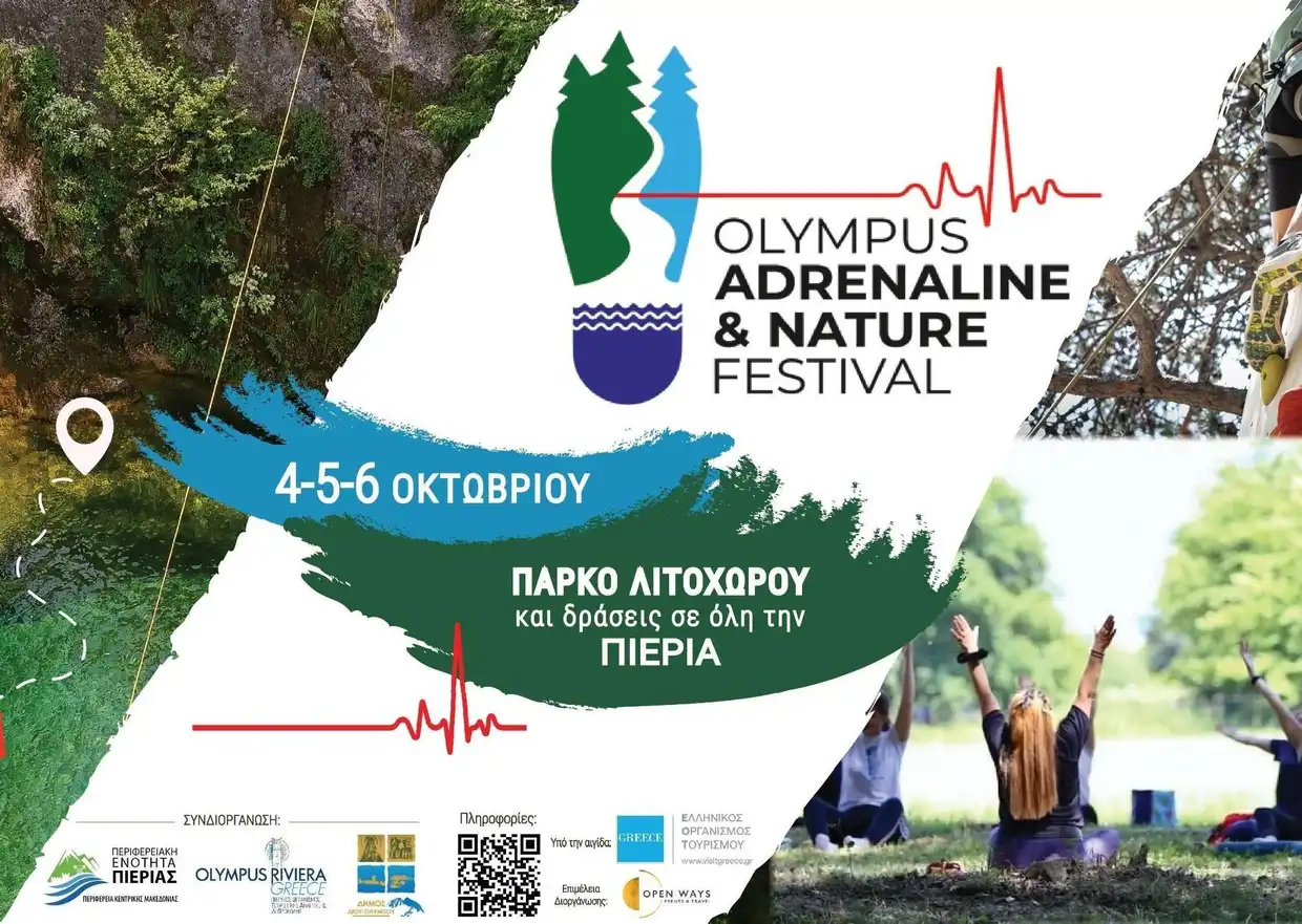 Η καρδιά της Πιερίας χτυπά δυνατά, για ακόμη μία χρονιά, στο 2ο Olympus Adrenaline & Nature Festival (OANF 2025) με βιωματικές δράσεις και εμπειρίες σε όλο το Νομό, το διάστημα 4 – 6 Οκτωβρίου 2025.
