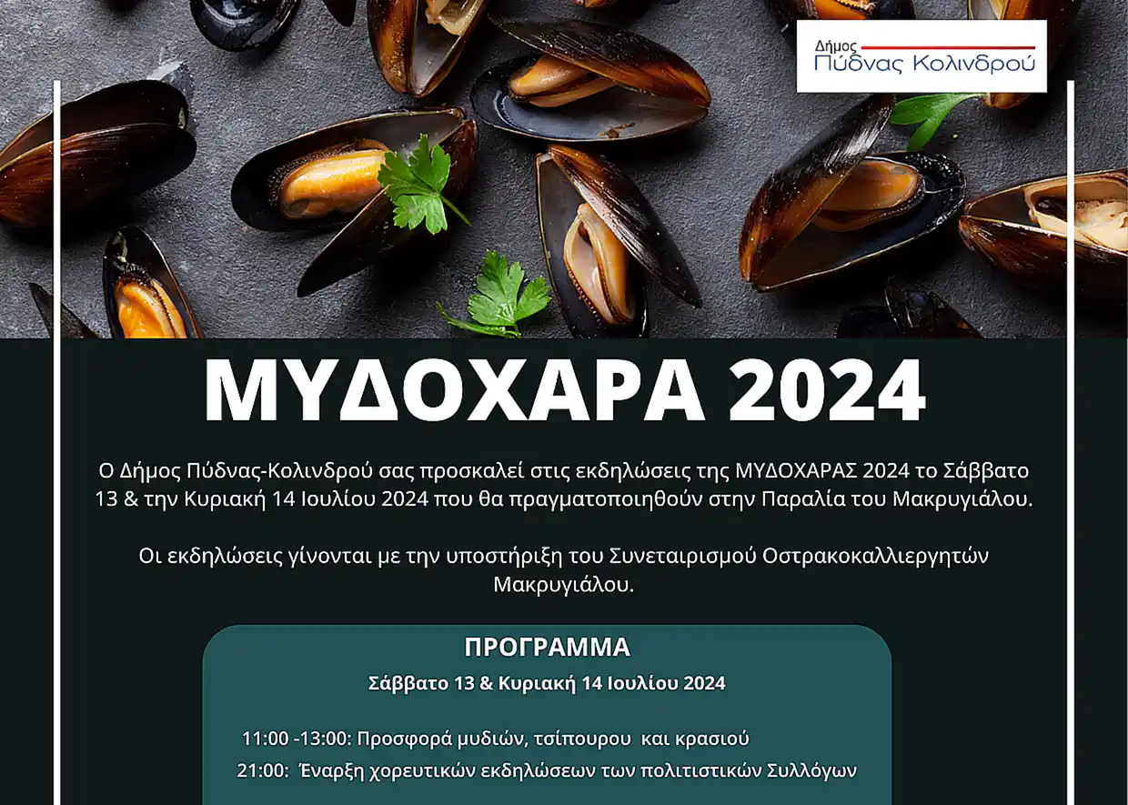 Να σημειώσουμε ακόμη ότι η φετινή διοργάνωση γίνεται με την υποστήριξη του Συνεταιρισμού Οστρακοκαλλιεργητών Μακρυγιάλου και το πρόγραμμα περιλαμβάνει προσφορά μυδιών στις δύο ημέρες διοργάνωσης στις πρωινές εκδηλώσεις και χορευτικά των πολιτιστικών συλλόγων το βράδυ.