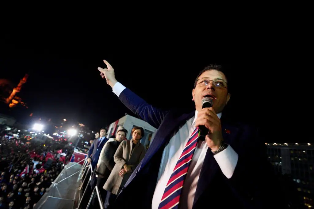 Ο Ιμάμογλου, ο οποίος θεωρείται ένας πιθανός ισχυρός αντίπαλος στον Ερντογάν, κάλεσε τους κατοίκους της μεγαλύτερης πόλης της Τουρκίας να δείξουν «ενότητα και αλληλεγγύη» ενώνοντας τη φωνή τους με τη δική του και των ηγετών έξι αντιπολιτευόμενων κομμάτων στα κεντρικά γραφεία του δήμου στις 4:00 μμ (15:00 ώρα Ελλάδος).