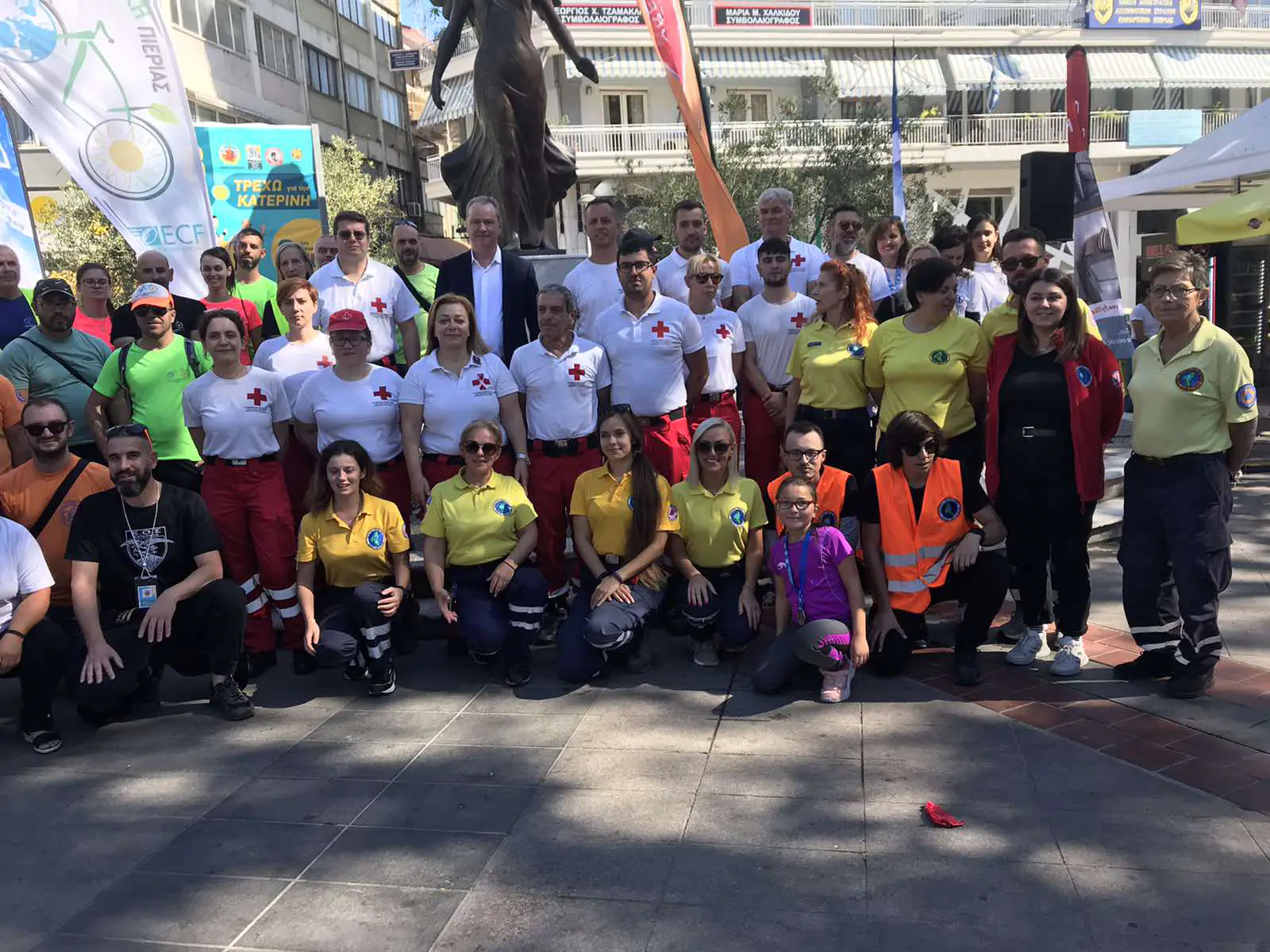 Οι Εθελοντές του “Τρέχω για την Κατερίνη“, και φώτο από την πλατεία της πόλης, μετά το τέλος του αγώνα