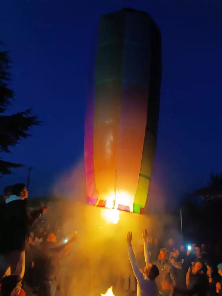 Εντυπωσιακό το  πέταγμα του αερόστατου  στο Δίον   στην κεντρική πλατεία.
