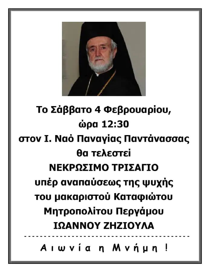 Τρισάγιο Υπέρ Αναπαύσεως Μακαριστού Μητροπολίτου Ιωάννου Ζήζουλα