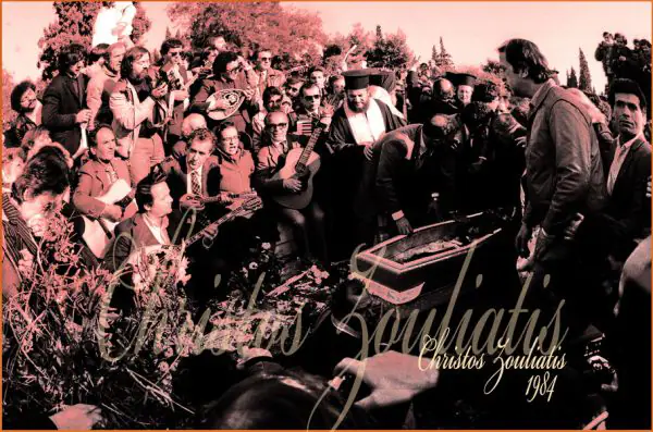 Με την Σωτηρία Μπέλου τραγική φιγούρα στη μέση, οι μουσικοί που τον συντρόφευαν στο Χάραμα έπαιξαν προς τιμήν του την «Συννεφιασμένη Κυριακή» και το πλήθος ξέσπασε σε λυγμούς.