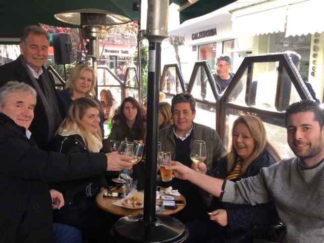 Διακρίναμε τον υποψήφιο δήμαρχο Γιώργο Νταντάμη, πλαισιωμένο από δύο υποψηφίους δημοτικούς συμβούλους του, τον Τάσο Τασιούλα, την Τζένη Δεληγιαννίδου, τον Πέτρο  Διαμαντίδη, τον Δημήτρη Μπέη, τον Δημήτρη Σαββίδη, την Άννα Σαββίδου με την παρέα της, τον Σάκη Κακοσούλη με τη γυναίκα του Βίκη Πέξα, τον γιατρό Δημήτρη Φασέκη, τον υποψήφιο δημοτικό Σύμβουλο Πόλυ Παπαγεωργίου και άλλους.
