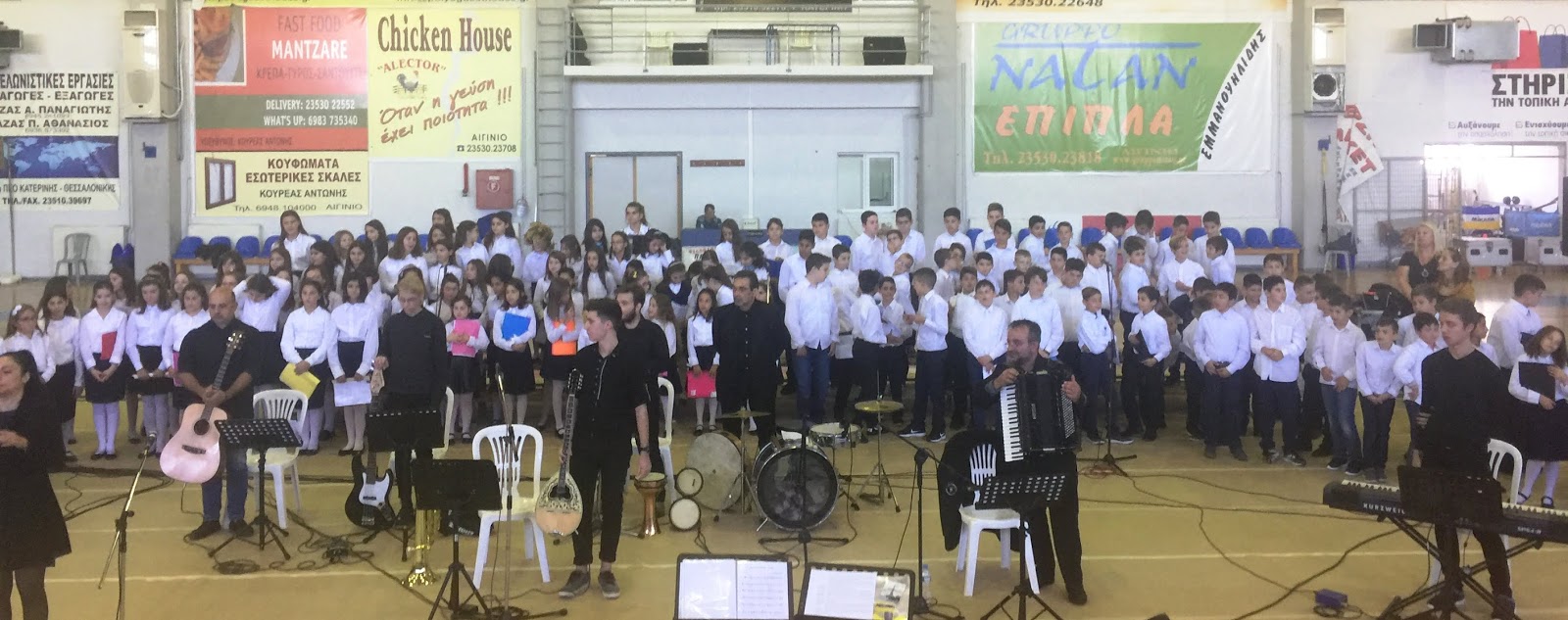 «Η ισχύς εν τη ενώσει»! Καθηγητές και μαθητές της μουσικής σχολής Αιγινίου, νεανική Δημοτική χορωδία Αιγινίου Canto Olympus, το ανδρικό τμήμα του φωνητικού συνόλου, με την συμβολή του διευθυντή της Φιλαρμονικής Αιγινίου Βαγγέλη Μπουσμαλή και του Λευτέρη Αγγουριδάκη διευθυντή μουσικής σχολής Αιγινίου αλλά και την τόσο σημαντική εθελοντική προσφορά των μελών των μουσικών σχημάτων, συνέθεσαν ένα εξαιρετικό θέαμα που απόλαυσαν γονείς και φίλοι των παιδιών που κατέκλισαν το κλειστό γυμναστήριο του Αιγινίου.