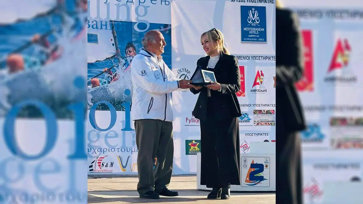 Βράβευση της Αντιπεριφερειάρχη Πιερίας από τον ΝΟΚΑΤ στην τελετή λήξης του Πρωταθλήματος Optimist U13