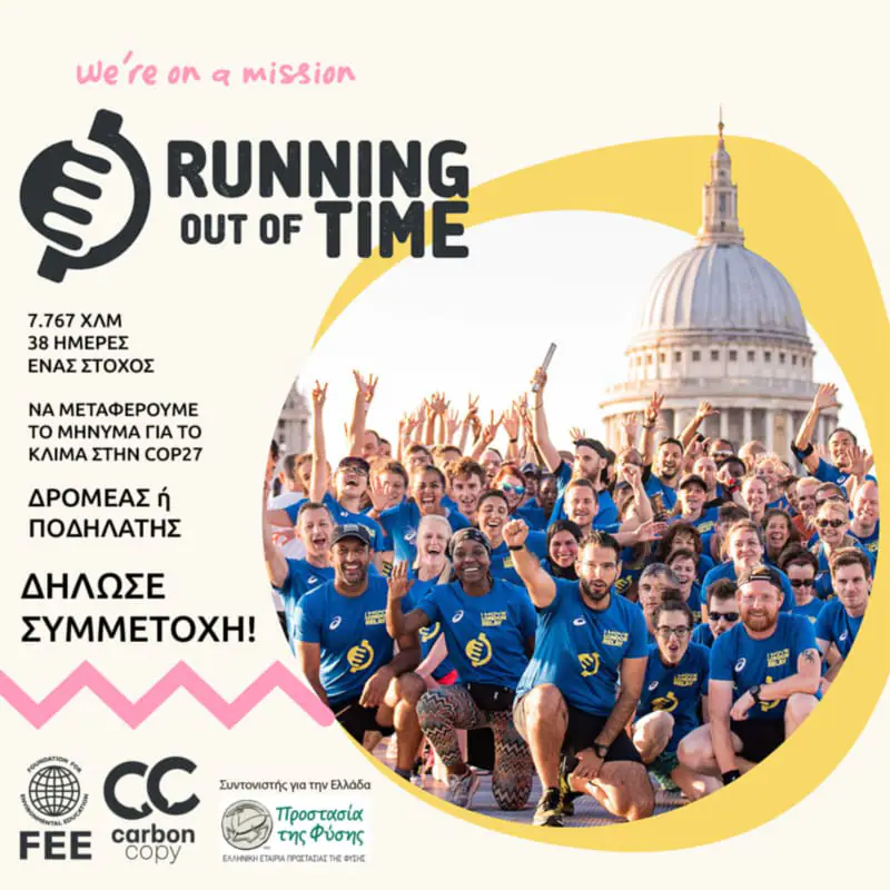 30 Σεπτεμβρίου 2022: Σήμερα, ο πρώτος από χιλιάδες δρομείς ξεκινά από τη Γλασκόβη (που φιλοξένησε την COP26) στη Running Out of Time, μια μοναδική σκυταλοδρομία που αναμένεται να καταρρίψει κάθε προηγούμενο, σε μια ανθρώπινη αλυσίδα συνεργασίας που θα διανύσει 7.767 χλμ. σε 18 χώρες για να μεταφέρει το μήνυμα για την κλιματική εκπαίδευση, από τη νέα γενιά στους ηγέτες που θα συμμετέχουν στη Διάσκεψη του ΟΗΕ για την Κλιματική Αλλαγή COP27 στο Sharm El–Sheikh στην Αίγυπτο.